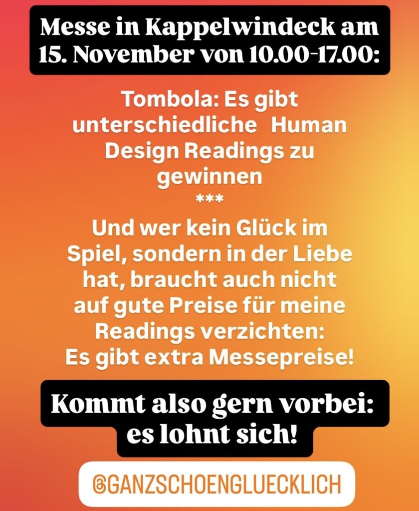 Am 25.08.2025 fand in Dingolfing der 2. Human Design Infoabend statt! Dieses Mal waren 3 Manifestoren, 3 Projektoren, super viele Generatoren, aber auch 3 Reflektoren! Eine Wahnsinnsenergie und wieder viele interessierte Gesichter schauten mich an. Ich danke euch, dass ihr da ward. Welch ein Geschenk!
